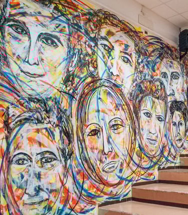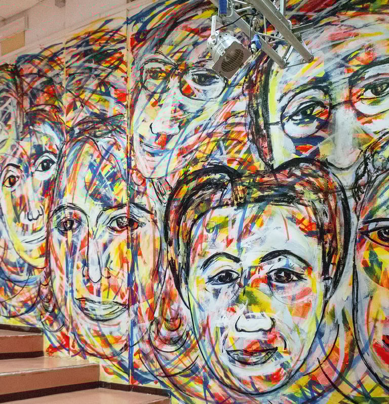 "The Constituent Mothers" is a large mural by Carlo Gori for the "Massimo Iaboni" Theater Hall of the Istituto Comprensivo Corrado Melone in Ladispoli (Rome). The work is dedicated to the 21 women who joined the Italian Constituent Assembly on 2 June 1946 thanks to the first election that allowed women to both vote and be elected.